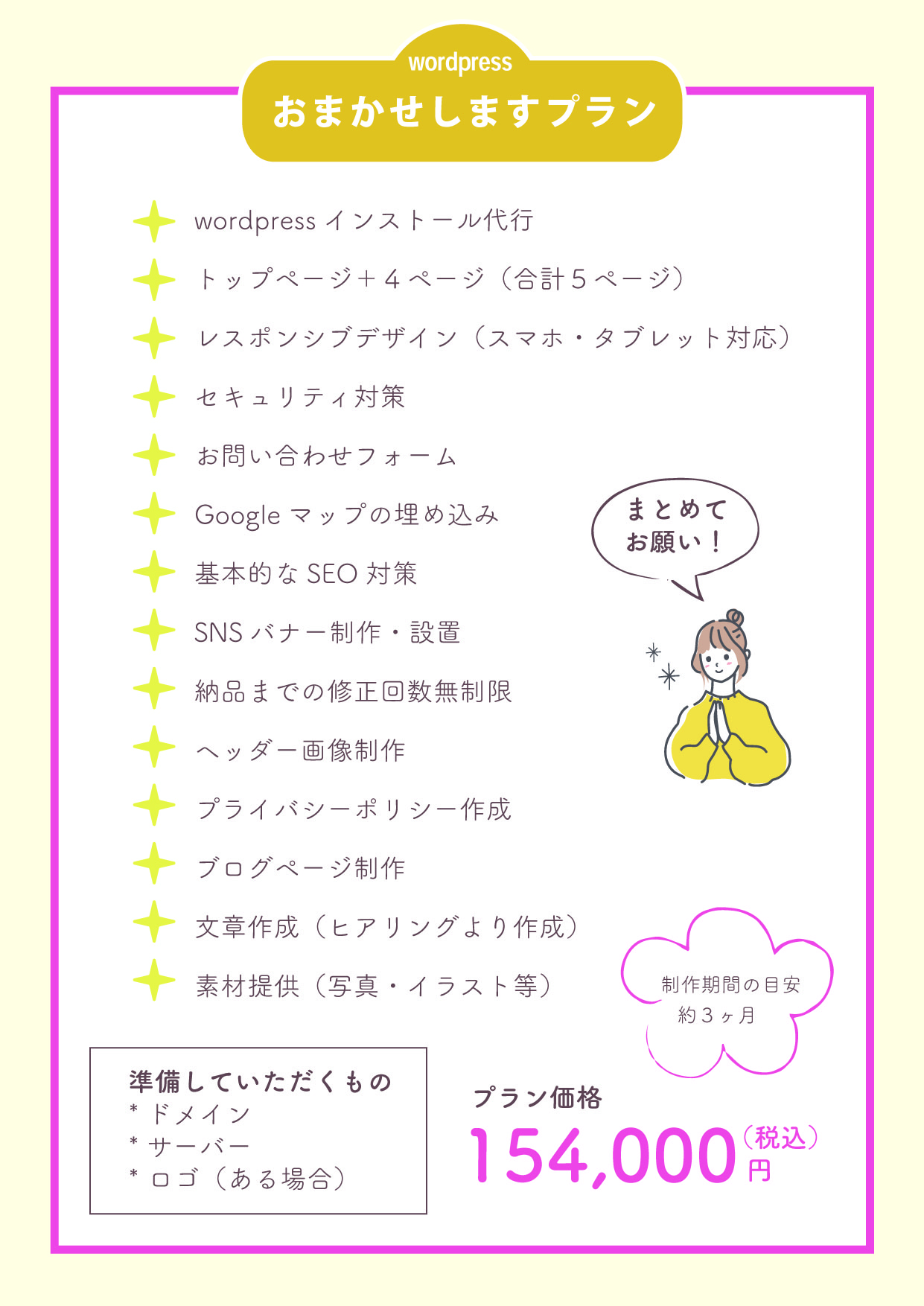 • 価格: 154,000円(税込)/制作期間の目安:約3ヶ月。